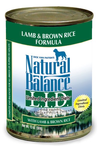 | Dick Van Patten's Natural Balance L.I.D. Limited Ingredient Diets Lamb and Brown Rice Canned Formula for Dogs is a proven formula for dogs with sensitivities based on the Natural Balance unique protein and carbohydrate blend. Some dogs may be highly sensitive to food additives in their diet. Sensitivity reactions can lead to irritable bowel, upset stomach, and a number of skin problems. Natural Balance has created L.I.D. Limited Ingredient Diets Lamb and Brown Rice Canned Formula for dogs with these food sensitivities, along with effective natural ingredients to help rebuild the dog's immune system. Natural Balance L.I.D. Limited Ingredient Diets Lamb and Brown Rice Canned Formula is a complete and balanced diet for your dog, yet it has been formulated to complement Natural Balance Lamb Meal and Brown Rice Dry Formula so dogs with sensitivities can now have a complete grain-free diet. Adding Natural Balance L.I.D. Limited Ingredient Diets Lamb and Brown Rice Canned Formula satisfies the increased caloric requirement. Also great for picky-eaters and can help kindle the appetite of older dogs. Complete and balanced for all breeds and life stages from puppies to adults. Quantity: 12 cans. Size: 13-Ounce per can. ...Read